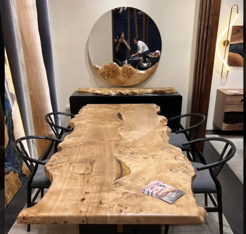 Please note that since we use raw wood in its natural form and shape to create our tables, the actual product may exhibit slight variations from the displayed picture. Additionally, any accessories or chairs shown in the picture are not included in the given prices.